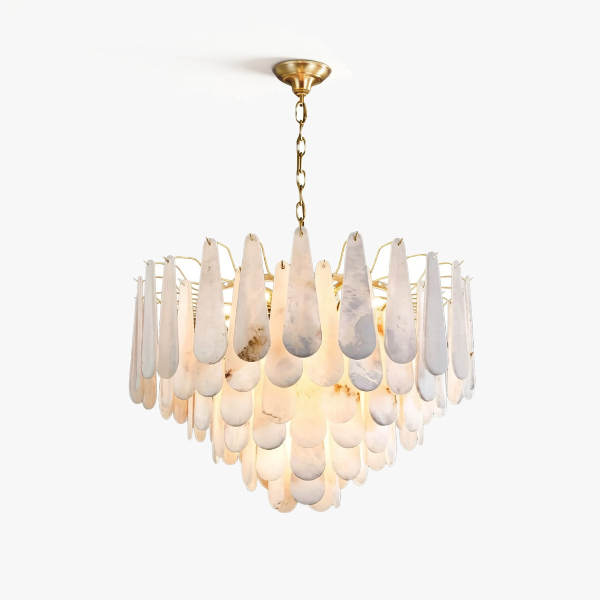Cascading, droplet-shaped alabaster pieces for a flowing effect.