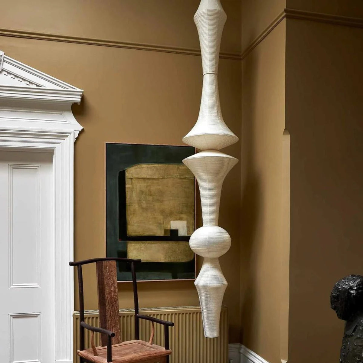 The Akari E Pendant Swag Light brings a sense of serenity to your interior. Its rice paper shade features natural fiber textures that diffuse light across multiple angles, effectively filtering harsh glare. This sculptural piece creates soft, warm illumination, fostering a calm, Zen-inspired environment. Its versatile swag design allows for flexible placement, providing functional light without an overwhelming presence.