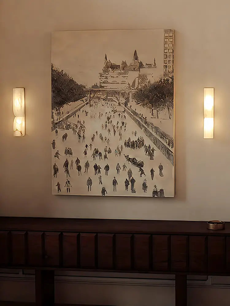 • Der gewölbte Alabasterschirm mit natürlicher Textur streut das Licht und erzeugt einen warmen, einladenden Schein.