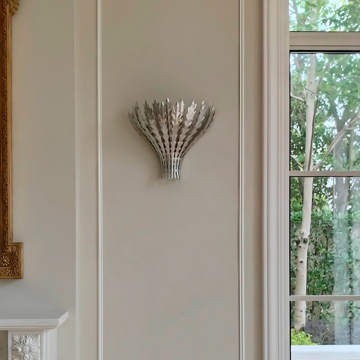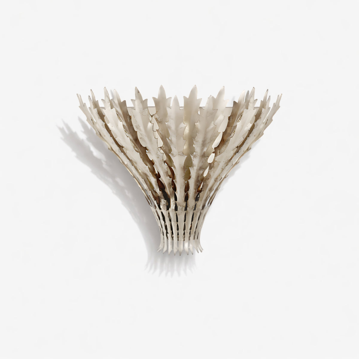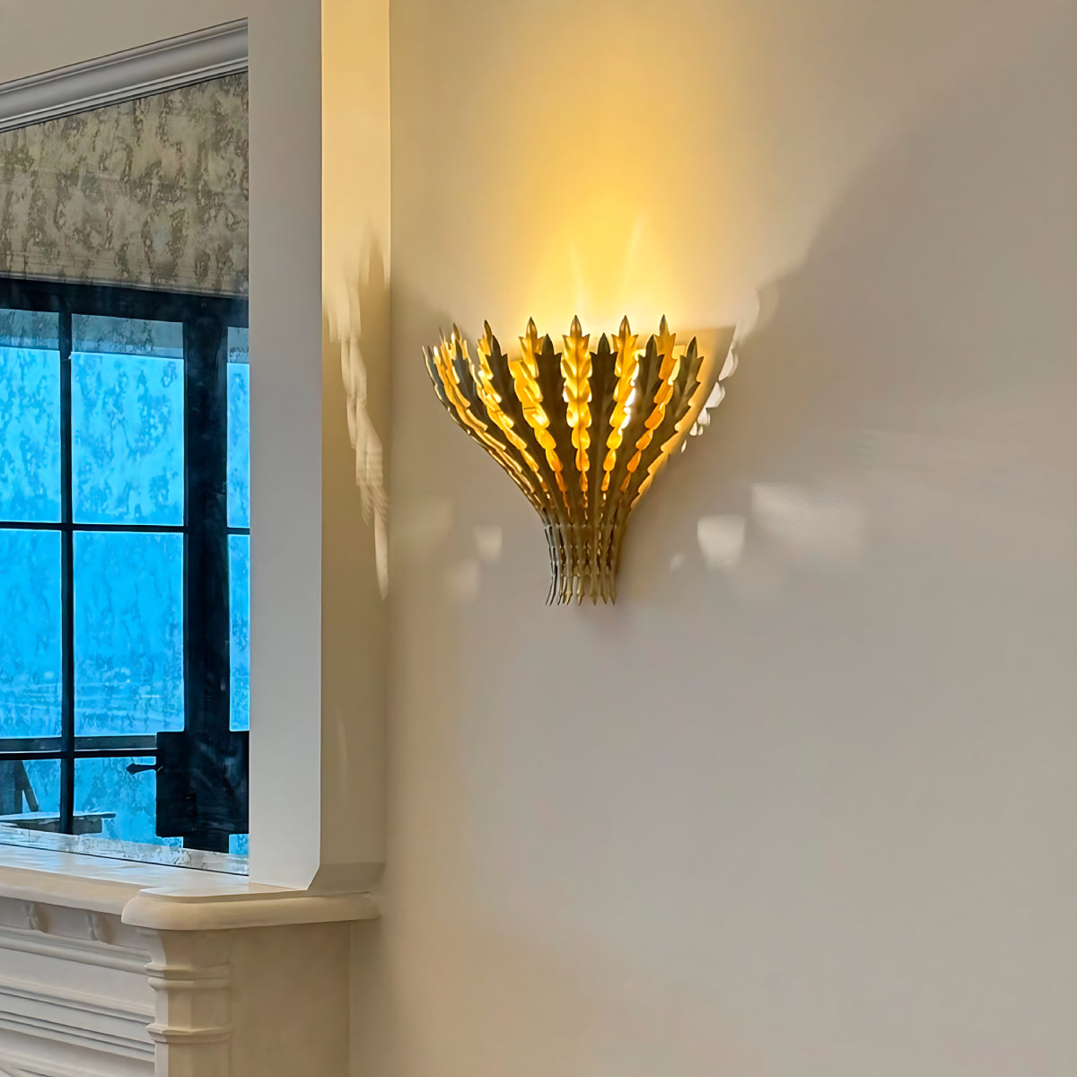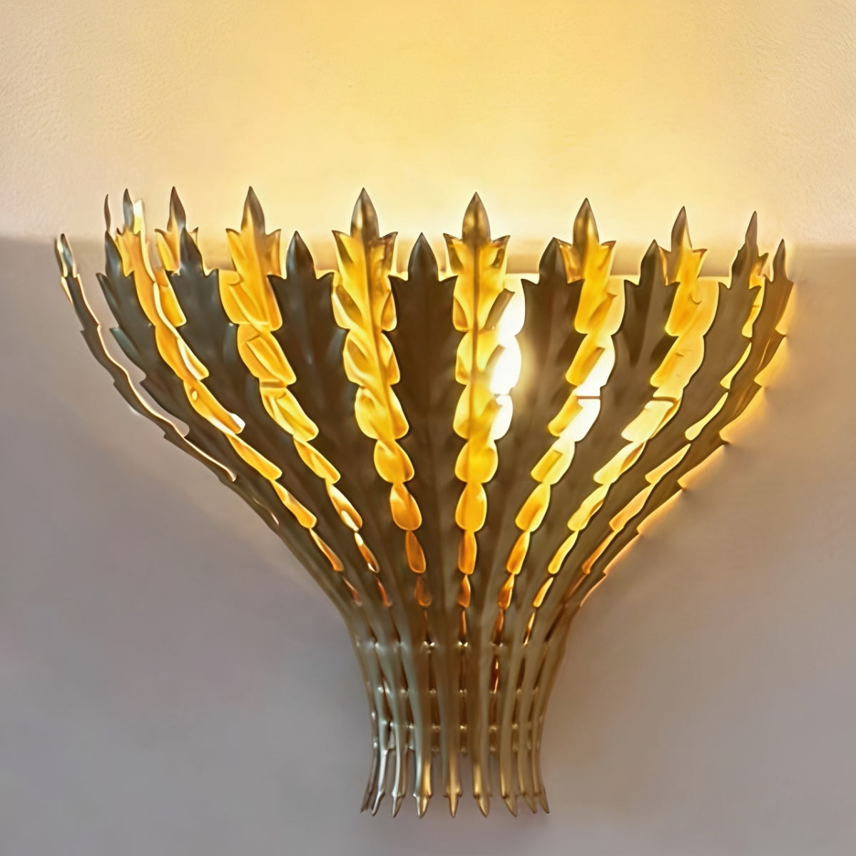 Die Wandleuchte Hampton besticht durch ihre mehrlagigen, mit Blattgold verzierten Metallelemente in Weizenform und verleiht jedem Raum eine warme, skulpturale Optik. Das nach oben gerichtete Licht sorgt für eine sanfte, stimmungsvolle Beleuchtung und dezente Schatten an der Wand. Durch die gelungene Kombination aus dekorativer Textur und funktionaler Beleuchtung setzt diese Leuchte einen raffinierten, von der Natur inspirierten Akzent und eignet sich ideal für Wohnzimmer, Flure oder Schlafzimmer.