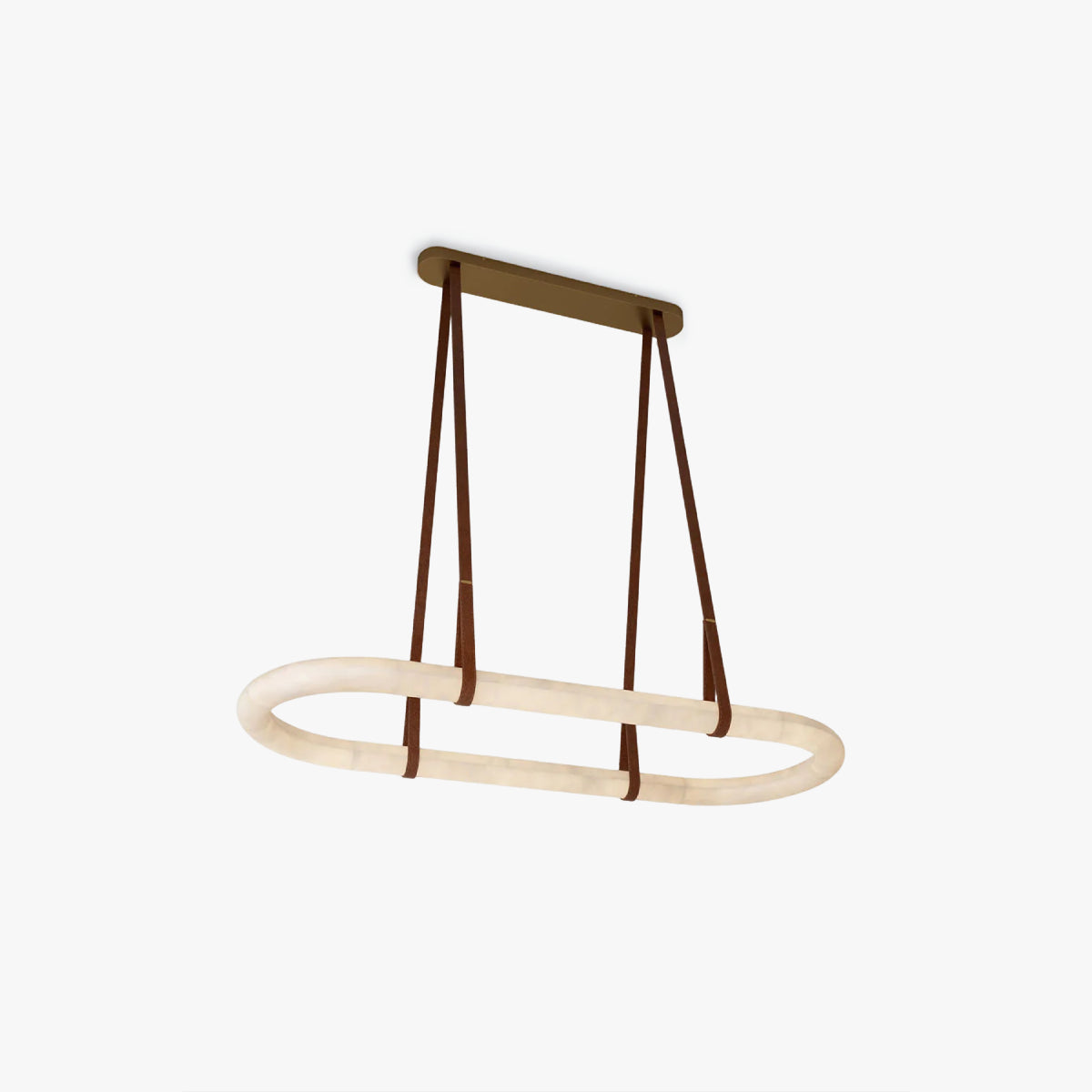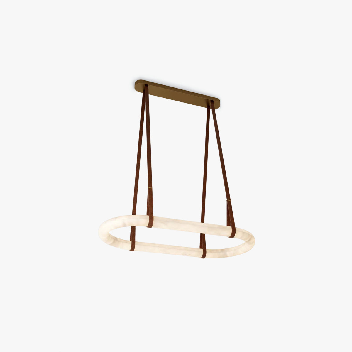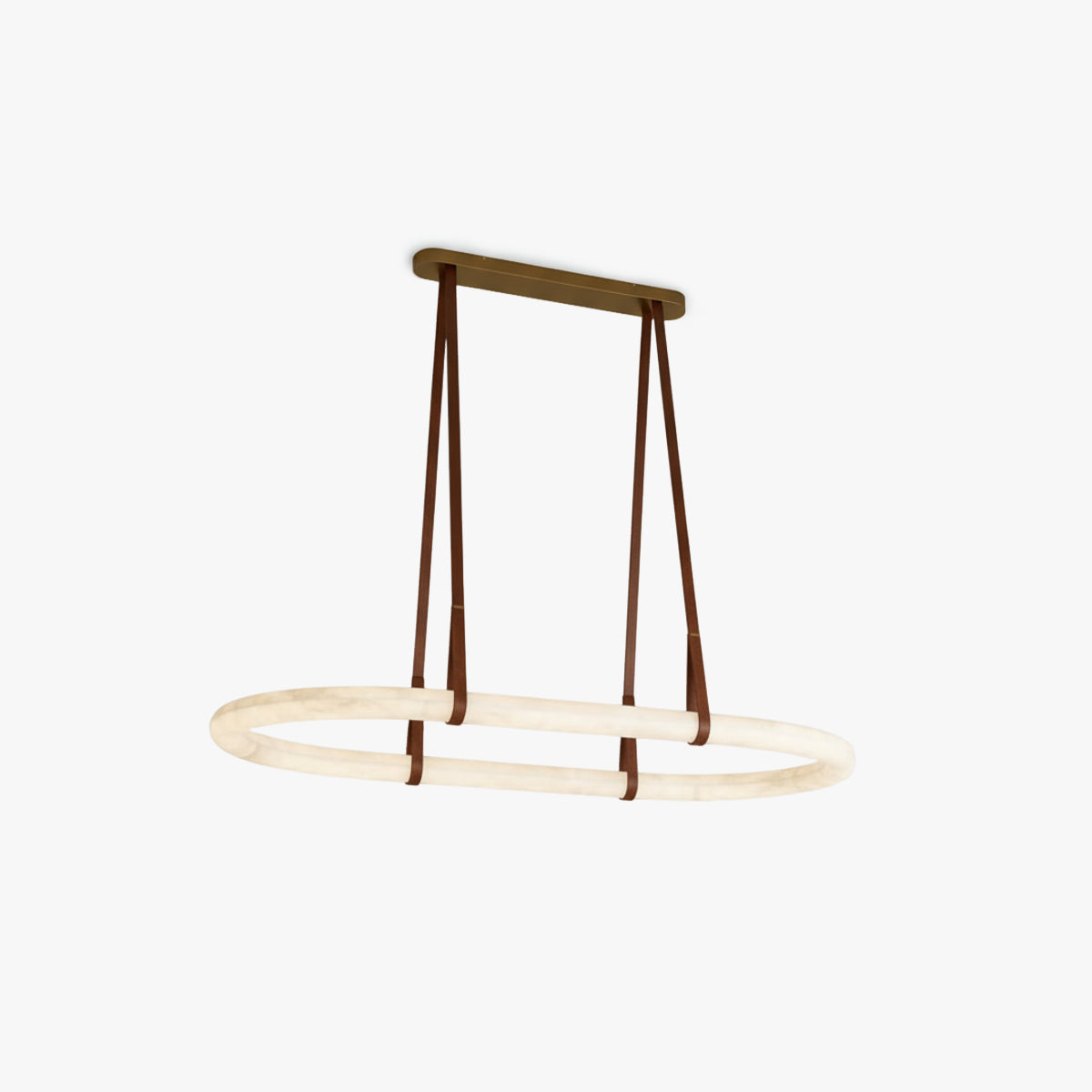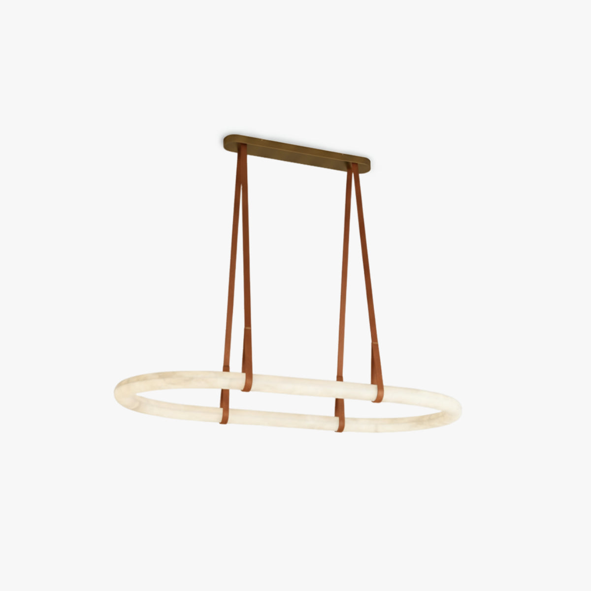 Le lustre Circle Alabaster, de forme ovale, est taillé dans de l'albâtre naturel et diffuse une lumière douce et chaleureuse. Ses sangles en cuir pleine fleur réglables permettent d'ajuster la hauteur de suspension, tandis que ses lignes épurées mettent en valeur la texture naturelle de la pierre. Conçu pour les intérieurs modernes, wabi-sabi ou minimalistes, il s'intègre parfaitement dans les salles à manger, les îlots de cuisine ou les espaces de vie.