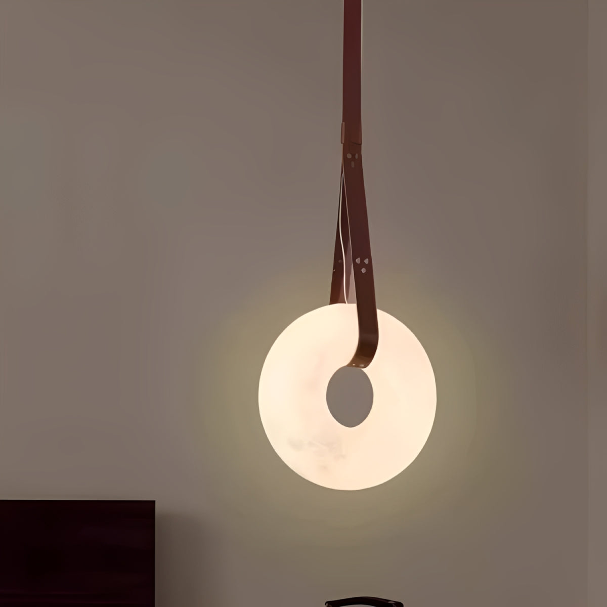 Sangle de suspension en cuir résistant.