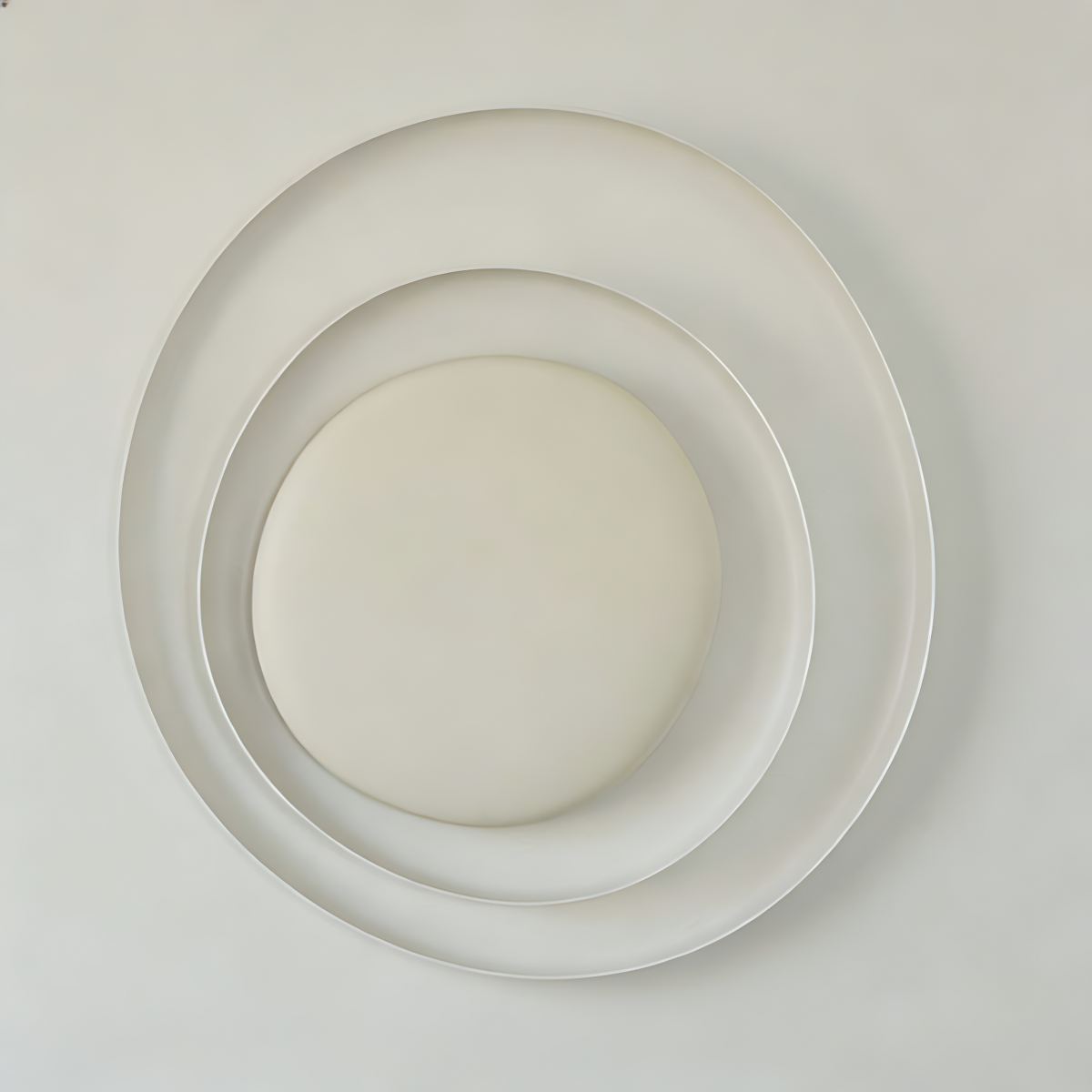 The Halation Wall Lamp projects concentric circles of light that dance across the wall, creating a captivating interplay of light and shadow. Featuring an innovative multi-layered design, the matte, frosted egg-shaped lampshade softens the light, infusing any room with subtle drama and a warm ambiance. It is not only a striking work of art but also adds a unique artistic touch to modern interior spaces.